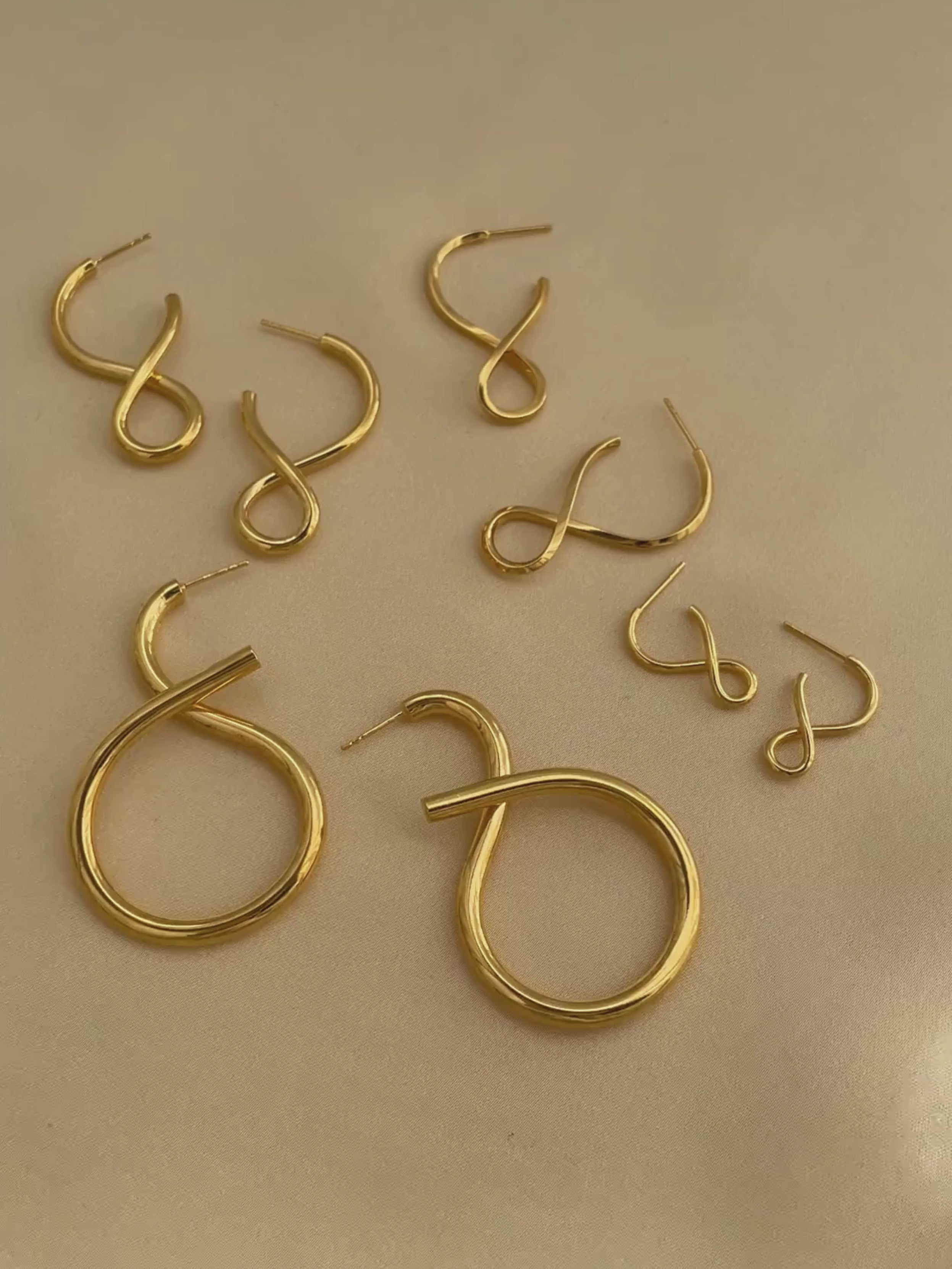 A study in movement and line, the Shape Earrings explore fluid form through sculptural simplicity. Shaped by hand in recycled sterling silver or plated with 24 karat recycled gold, each piece plays with light and space through soft twists and open loops. From bold statements to subtle curves—every style reflects the quiet strength of minimal design.